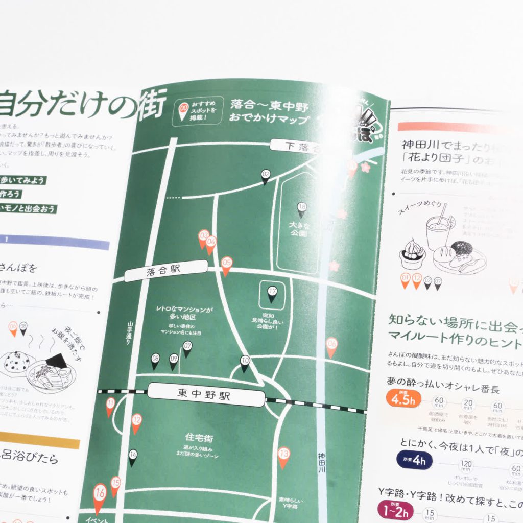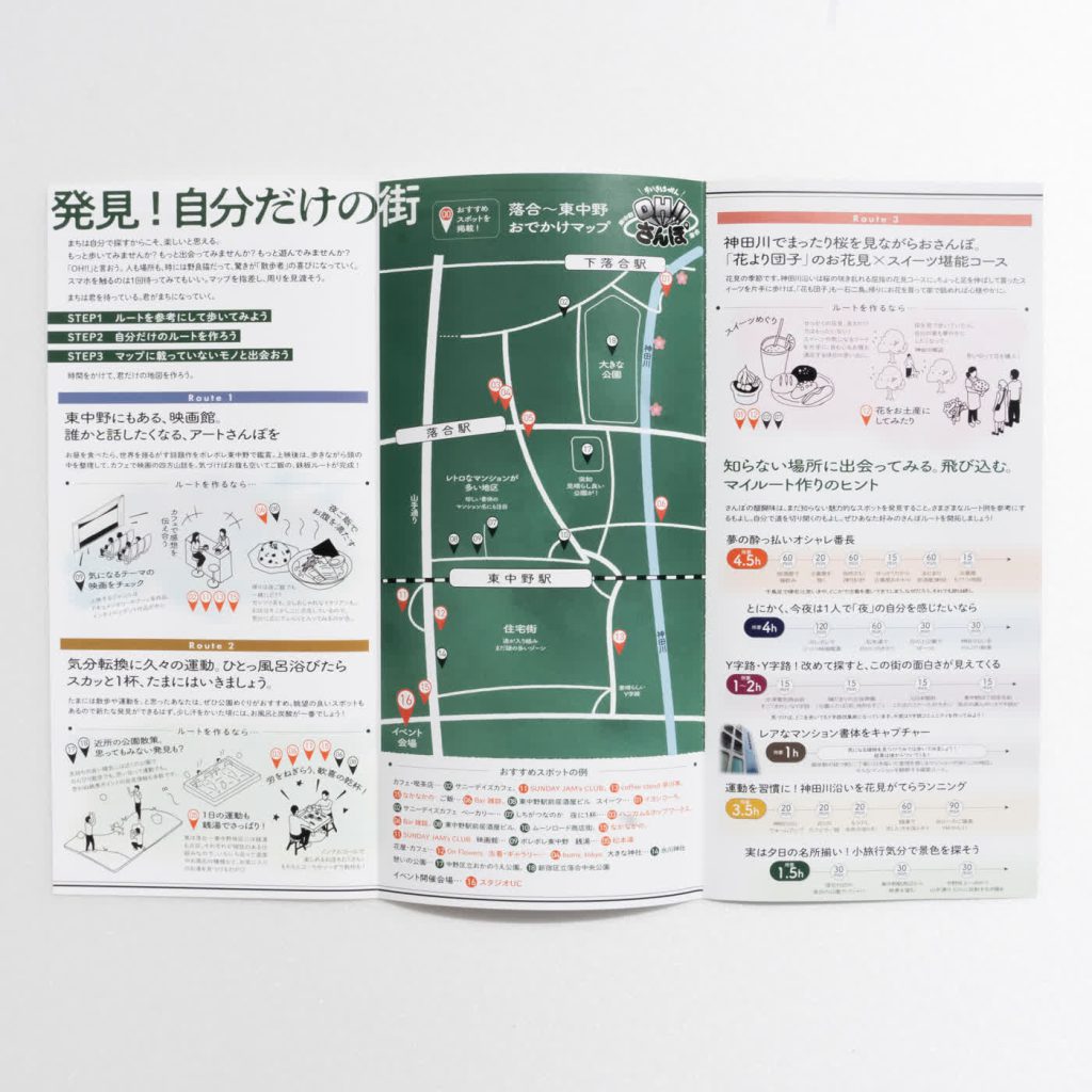 落合〜東中野エリアで春ごろ開催される多店舗ラリーイベントのマップ制作。お店の紹介はもちろん、街を楽しむヒントや、散歩の楽しみ方を伝えることにフォーカスした紙面づくりを意識しています。なかなかのも参加。